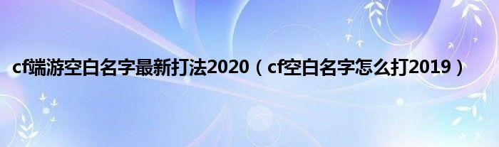 以上就是【cf端游空白名字最新打法2020,cf空白名字怎么打2019】相关内容。