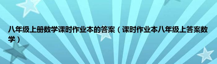 大家好,小问来为大家解答以上问题。八年级上册数学课时作业本的答案,课时作业本八年级上答案数学这个很多人还不知道,现在让我们一起来看看吧!