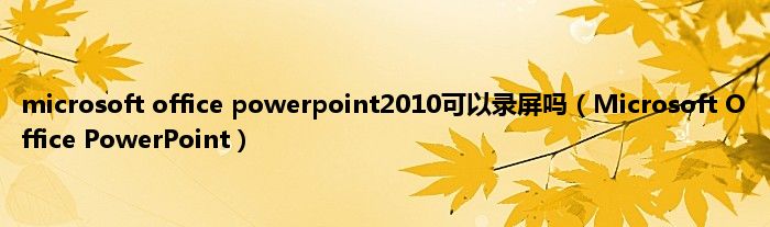 大家好,小问来为大家解答以上问题。microsoft office powerpoint2010可以录屏吗,Microsoft Office PowerPoint这个很多人还不知道,现在让我们一起来看看吧!