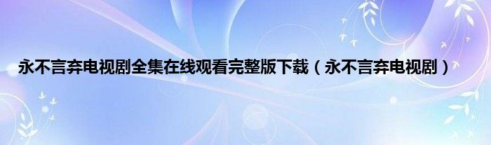大家好,小问来为大家解答以上问题。永不言弃电视剧全集在线观看完整版下载,永不言弃电视剧这个很多人还不知道,现在让我们一起来看看吧!