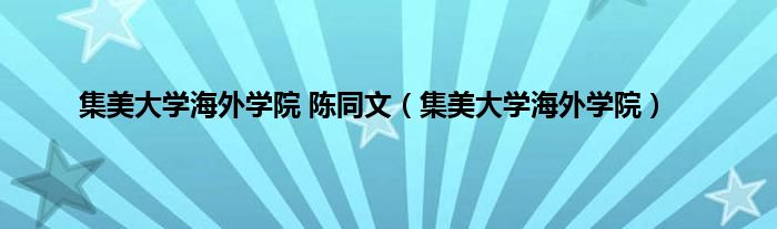 大家好,小问来为大家解答以上问题。集美大学海外学院 陈同文,集美大学海外学院这个很多人还不知道,现在让我们一起来看看吧!