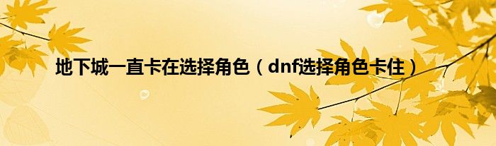 大家好,小问来为大家解答以上问题。地下城一直卡在选择角色,dnf选择角色卡住这个很多人还不知道,现在让我们一起来看看吧!