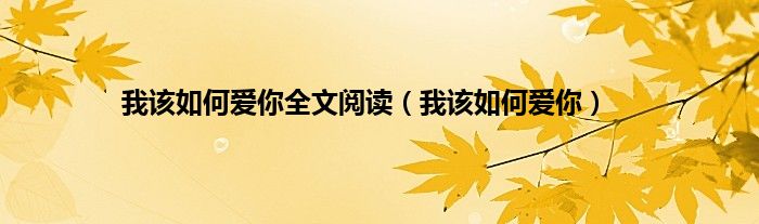 大家好,小问来为大家解答以上问题。我该如何爱你全文阅读,我该如何爱你这个很多人还不知道,现在让我们一起来看看吧!