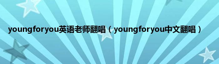 大家好,小问来为大家解答以上问题。youngforyou英语老师翻唱,youngforyou中文翻唱这个很多人还不知道,现在让我们一起来看看吧!