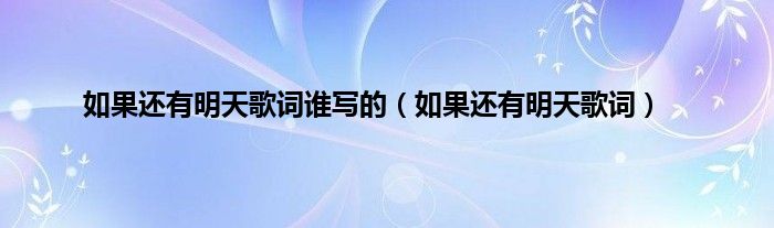 大家好,小问来为大家解答以上问题。如果还有明天歌词谁写的,如果还有明天歌词这个很多人还不知道,现在让我们一起来看看吧!