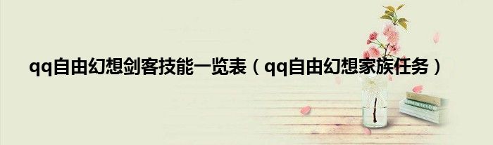 大家好,小问来为大家解答以上问题。qq自由幻想剑客技能一览表,qq自由幻想家族任务这个很多人还不知道,现在让我们一起来看看吧!