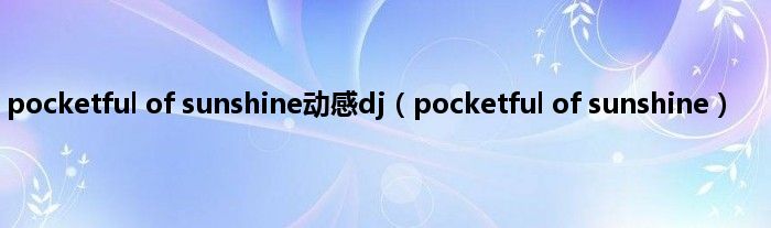 大家好,小问来为大家解答以上问题。pocketful of sunshine动感dj,pocketful of sunshine这个很多人还不知道,现在让我们一起来看看吧!