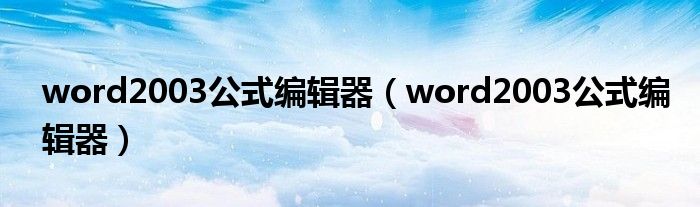 以上就是【word2003公式编辑器,word2003公式编辑器】相关内容。