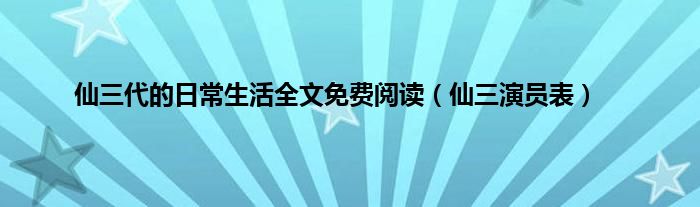 大家好,小问来为大家解答以上问题。仙三代的日常生活全文免费阅读,仙三演员表这个很多人还不知道,现在让我们一起来看看吧!