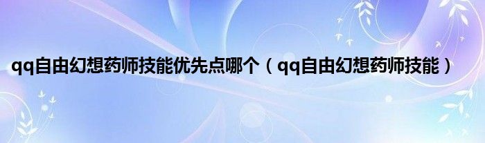 以上就是【qq自由幻想药师技能优先点哪个,qq自由幻想药师技能】相关内容。