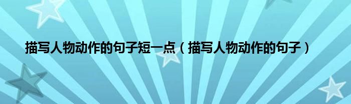 大家好,小问来为大家解答以上问题。描写人物动作的句子短一点,描写人物动作的句子这个很多人还不知道,现在让我们一起来看看吧!
