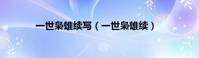 以上就是【一世枭雄续写,一世枭雄续】相关内容。
