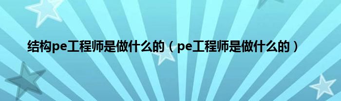 大家好,小问来为大家解答以上问题。结构pe工程师是做什么的,pe工程师是做什么的这个很多人还不知道,现在让我们一起来看看吧!