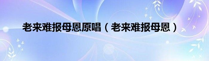 大家好,小问来为大家解答以上问题。老来难报母恩原唱,老来难报母恩这个很多人还不知道,现在让我们一起来看看吧!