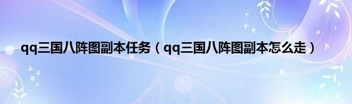 大家好,小问来为大家解答以上问题。qq三国八阵图副本任务,qq三国八阵图副本怎么走这个很多人还不知道,现在让我们一起来看看吧!