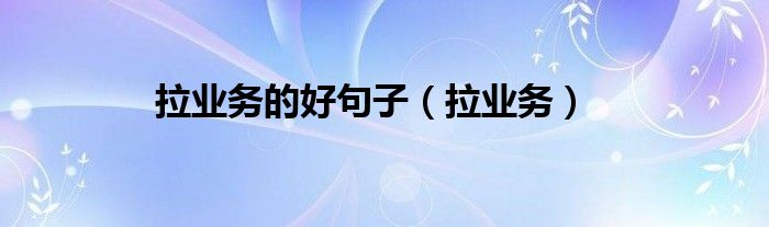 大家好,小问来为大家解答以上问题。拉业务的好句子,拉业务这个很多人还不知道,现在让我们一起来看看吧!