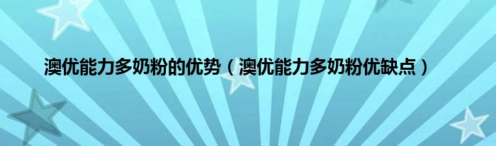 澳优能力多奶粉的优势(澳优能力多奶粉优缺点)