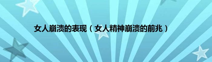 大家好,小问来为大家解答以上问题。女人崩溃的表现,女人精神崩溃的前兆这个很多人还不知道,现在让我们一起来看看吧!