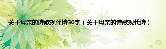 以上就是【关于母亲的诗歌现代诗30字,关于母亲的诗歌现代诗】相关内容。