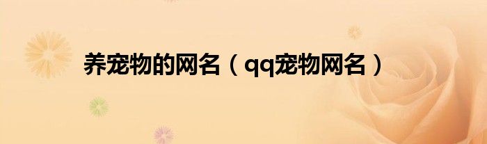 大家好,小问来为大家解答以上问题。养宠物的网名,qq宠物网名这个很多人还不知道,现在让我们一起来看看吧!