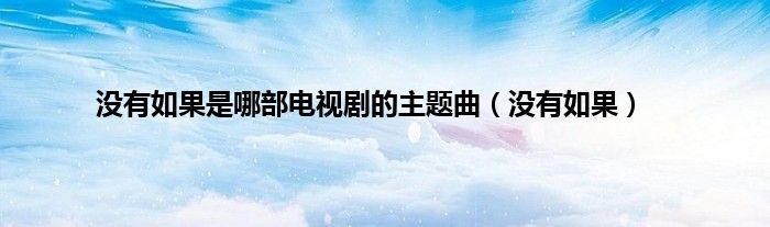 大家好,小问来为大家解答以上问题。没有如果是哪部电视剧的主题曲,没有如果这个很多人还不知道,现在让我们一起来看看吧!