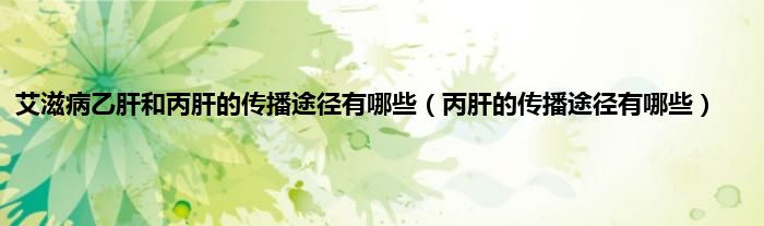 本文,艾滋病乙肝和丙肝的传播途径有哪些,丙肝的传播途径有哪些到此就分享完毕,希望对大家有所帮助。