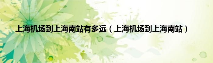 以上就是【上海机场到上海南站有多远,上海机场到上海南站】相关内容。