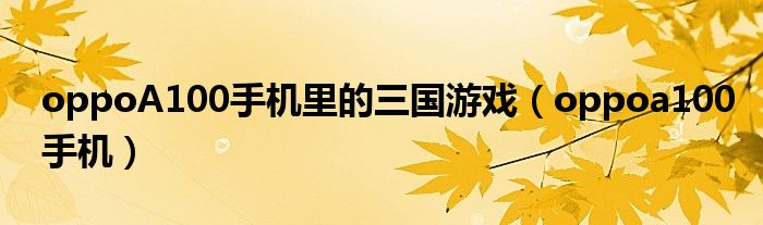以上就是【oppoA100手机里的三国游戏,oppoa100手机】相关内容。