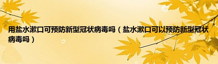 用盐水漱口可预防新型冠状病毒吗(盐水漱口可以预防新型冠状病毒吗)