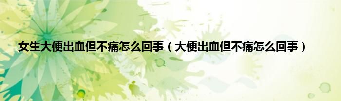 大家好,女生大便出血但不痛怎么回事,大便出血但不痛怎么回事很多人还不知道,现在让我们一起来看看吧!
