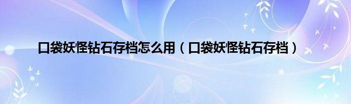 大家好,小问来为大家解答以上问题。口袋妖怪钻石存档怎么用,口袋妖怪钻石存档这个很多人还不知道,现在让我们一起来看看吧!