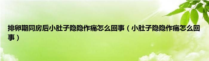 本文,排卵期同房后小肚子隐隐作痛怎么回事,小肚子隐隐作痛怎么回事到此就分享完毕,希望对大家有所帮助。