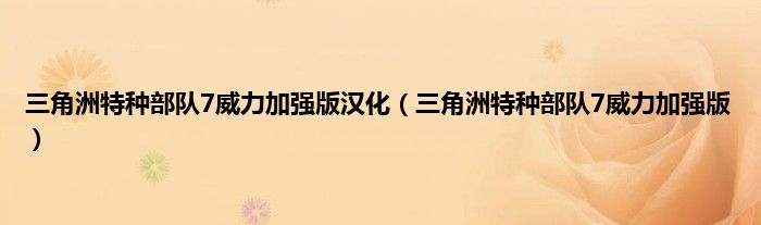 大家好,小问来为大家解答以上问题。三角洲特种部队7威力加强版汉化,三角洲特种部队7威力加强版这个很多人还不知道,现在让我们一起来看看吧!