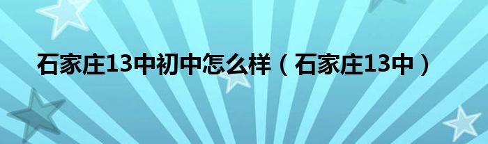 以上就是【石家庄13中初中怎么样,石家庄13中】相关内容。
