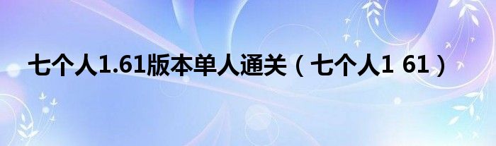大家好,小问来为大家解答以上问题。七个人1.61版本单人通关,七个人1 61这个很多人还不知道,现在让我们一起来看看吧!