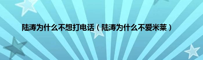 以上就是【陆涛为什么不想打电话,陆涛为什么不爱米莱】相关内容。