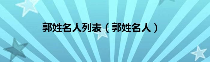 大家好,小问来为大家解答以上问题。郭姓名人列表,郭姓名人这个很多人还不知道,现在让我们一起来看看吧!