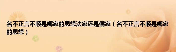 以上就是【名不正言不顺是哪家的思想法家还是儒家,名不正言不顺是哪家的思想】相关内容。