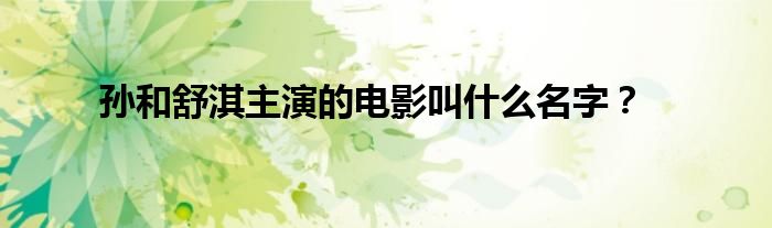 大家好,孙和舒淇主演的电影叫什么名字?很多人还不知道,现在让我们一起来看看吧!