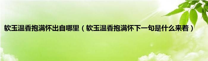 本文,软玉温香抱满怀出自哪里,软玉温香抱满怀下一句是什么来着到此就分享完毕,希望对大家有所帮助。