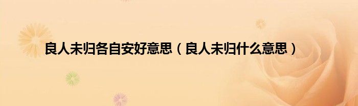本文,良人未归各自安好意思,良人未归什么意思到此就分享完毕,希望对大家有所帮助。