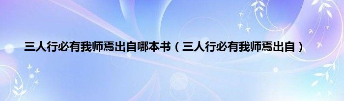 大家好,三人行必有我师焉出自哪本书,三人行必有我师焉出自很多人还不知道,现在让我们一起来看看吧!