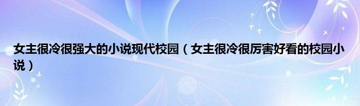 大家好,女主很冷很强大的小说现代校园,女主很冷很厉害好看的校园小说很多人还不知道,现在让我们一起来看看吧!