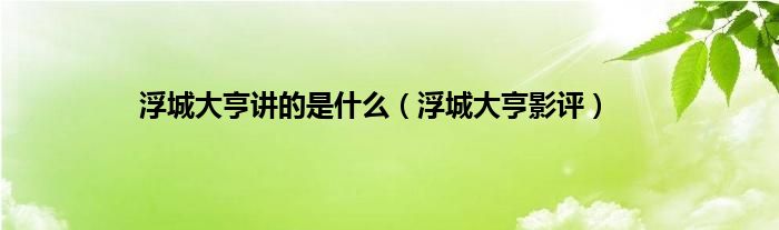 大家好,浮城大亨讲的是什么,浮城大亨影评很多人还不知道,现在让我们一起来看看吧!