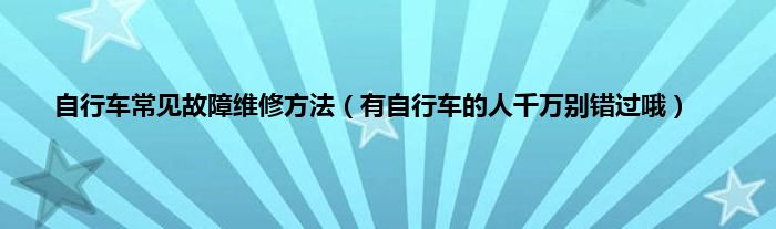 本文,自行车常见故障维修方法,有自行车的人千万别错过哦到此就分享完毕,希望对大家有所帮助。