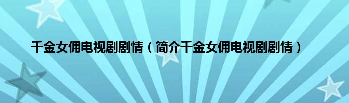 本文,千金女佣电视剧剧情,简介千金女佣电视剧剧情到此就分享完毕,希望对大家有所帮助。