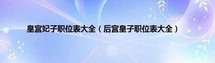 本文,皇宫妃子职位表大全,后宫皇子职位表大全到此就分享完毕,希望对大家有所帮助。