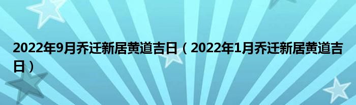 大家好,2022年9月乔迁新居黄道吉日,2022年1月乔迁新居黄道吉日很多人还不知道,现在让我们一起来看看吧!