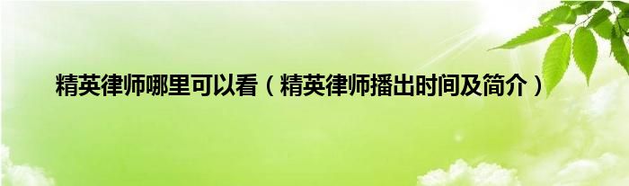 大家好,精英律师哪里可以看,精英律师播出时间及简介很多人还不知道,现在让我们一起来看看吧!