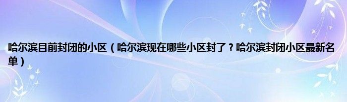 本文,哈尔滨目前封闭的小区,哈尔滨现在哪些小区封了?哈尔滨封闭小区最新名单到此就分享完毕,希望对大家有所帮助。